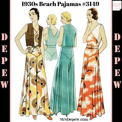 Vintage Sewing Pattern 1930s Beach Pajama Wide Leg Trouser Bolero 3149 Pdf